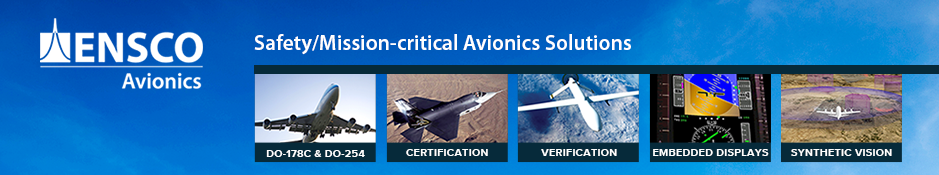 For more than 30 years, ENSCO Avionics has developed sophisticated airborne systems for the aerospace industry to meet DO-178C/ED-12, DO-254/ED-80, DO-278A/ED-109, DO-326A, and military standards for manned and unmanned systems. The focus of ENSCO Avionic is on safety- and mission-critical software and programmable hardware engineering solutions, display application development, tailored synthetic vision applications, integration test solutions, and the IData® Tool Suite. ENSCO Avionics, based in Endicott, N.Y., is a wholly owned subsidiary of ENSCO, Inc.